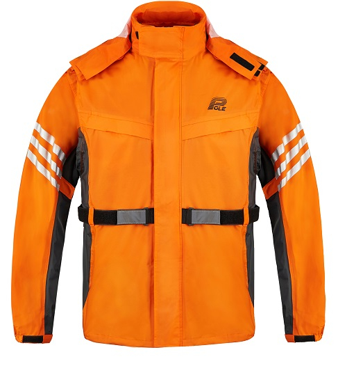 Double hoods. Inner hood used half soft elastic fabric, fit the head better, outer hood with moveable zipper, could be stowed in collar. Reflective tape on the front,back,sleeves and ankle. Waist with velcro and elastic tape adjustment. Sleeves and legs cuff with elastic tape and velcro adjustment. Two waterproof pockets in jacket. With a bag can put under the saddle.