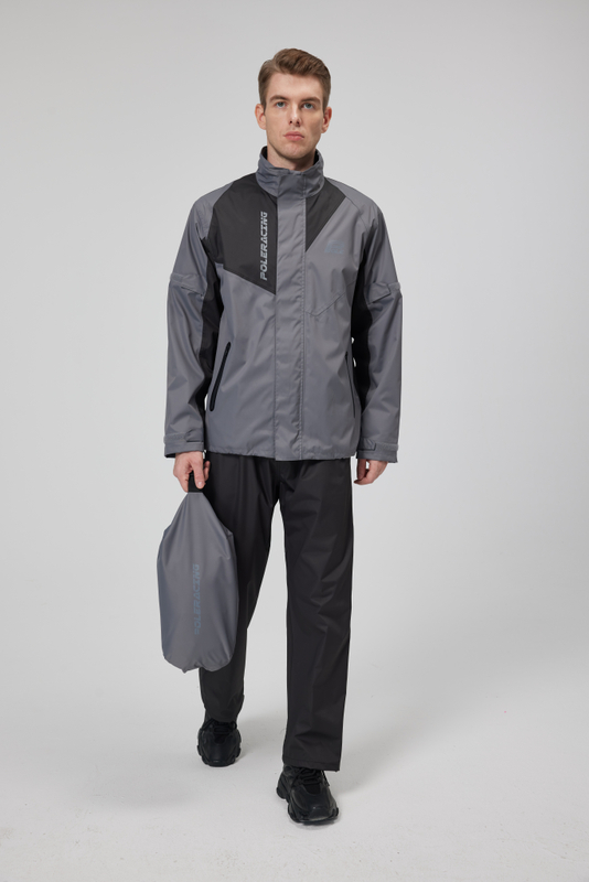 Full mesh lining inside jacket and pants.Taped seams sealed. Back collar with drawstring adjustment Double front overlapping closure. Two front heat pressing waterproof zipper pockets. Double cuffs.Adjustable cuff, arm,waist ,bottom and ankle. Back with air vent ,refective band and logo.Pants outseam with long waterproof zipper opening, flap with reflective band. Shoulder bag is available stored under the seat or inside the top case.