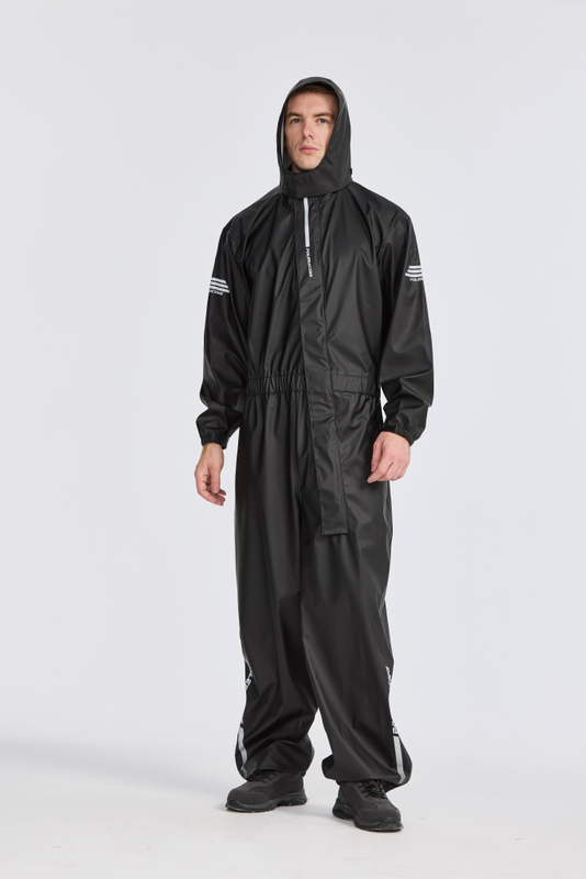 • Stretched fabric.Hot-press seams sealed. Make sure the waterproof function. Hood with velco adjustment, could be stowed inside the collar Front overlapping with reflective printing. cuff and waist with elastic band adjustment, Reflective printing, Ankle with 3D transfer reflective printing and waterproof zipper opening adjustment.